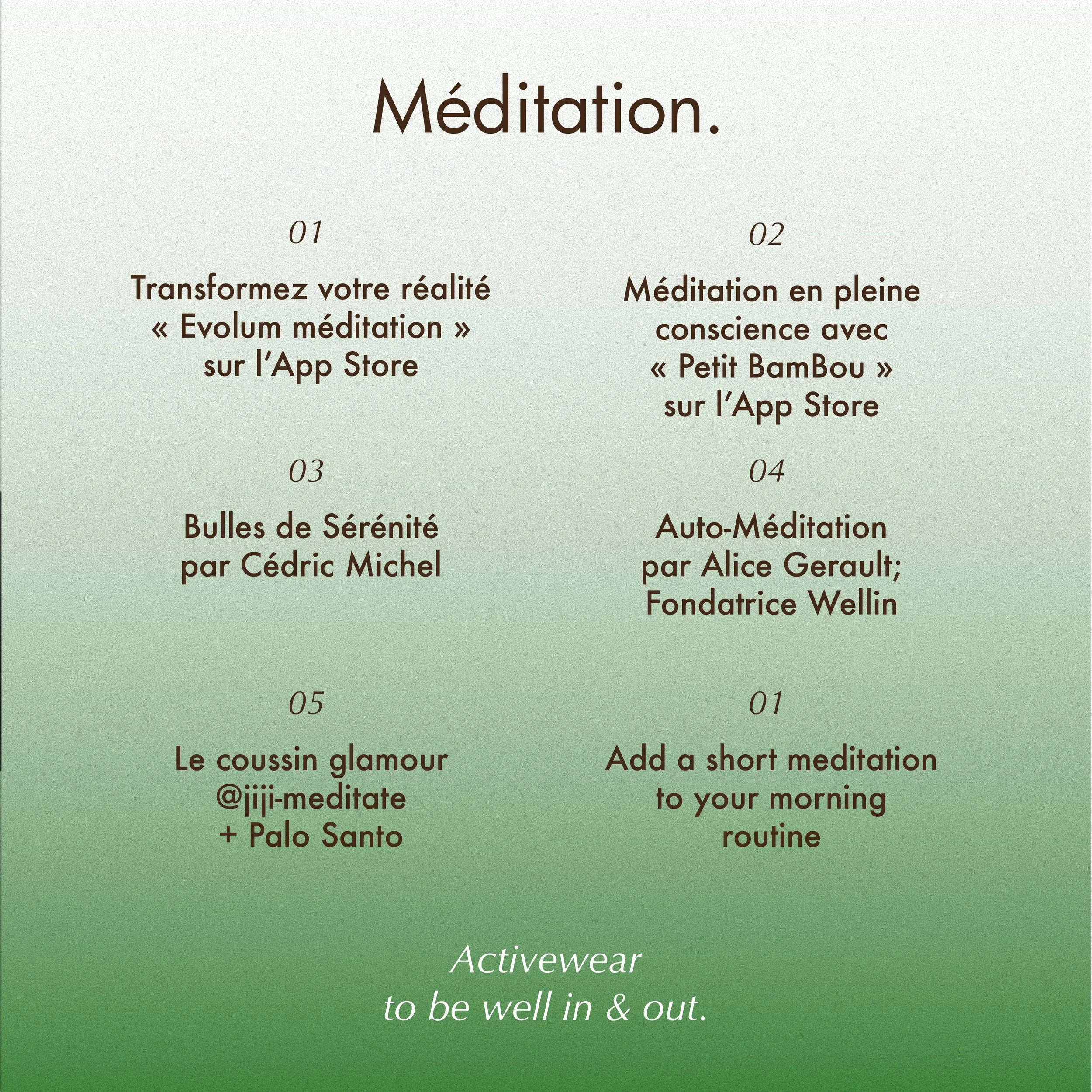 en association avec des marques, rééls méditatifs, conseils bien-être, adresses favorites,